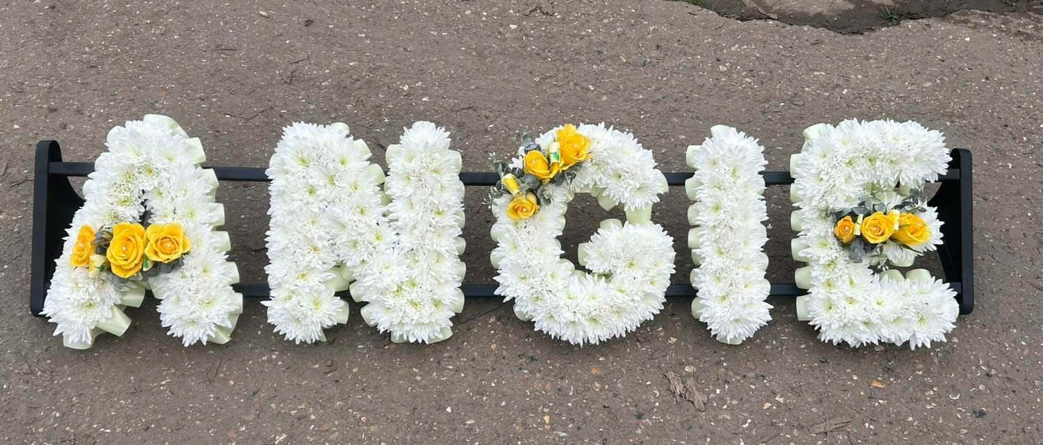 All lettering arrangments come in white only